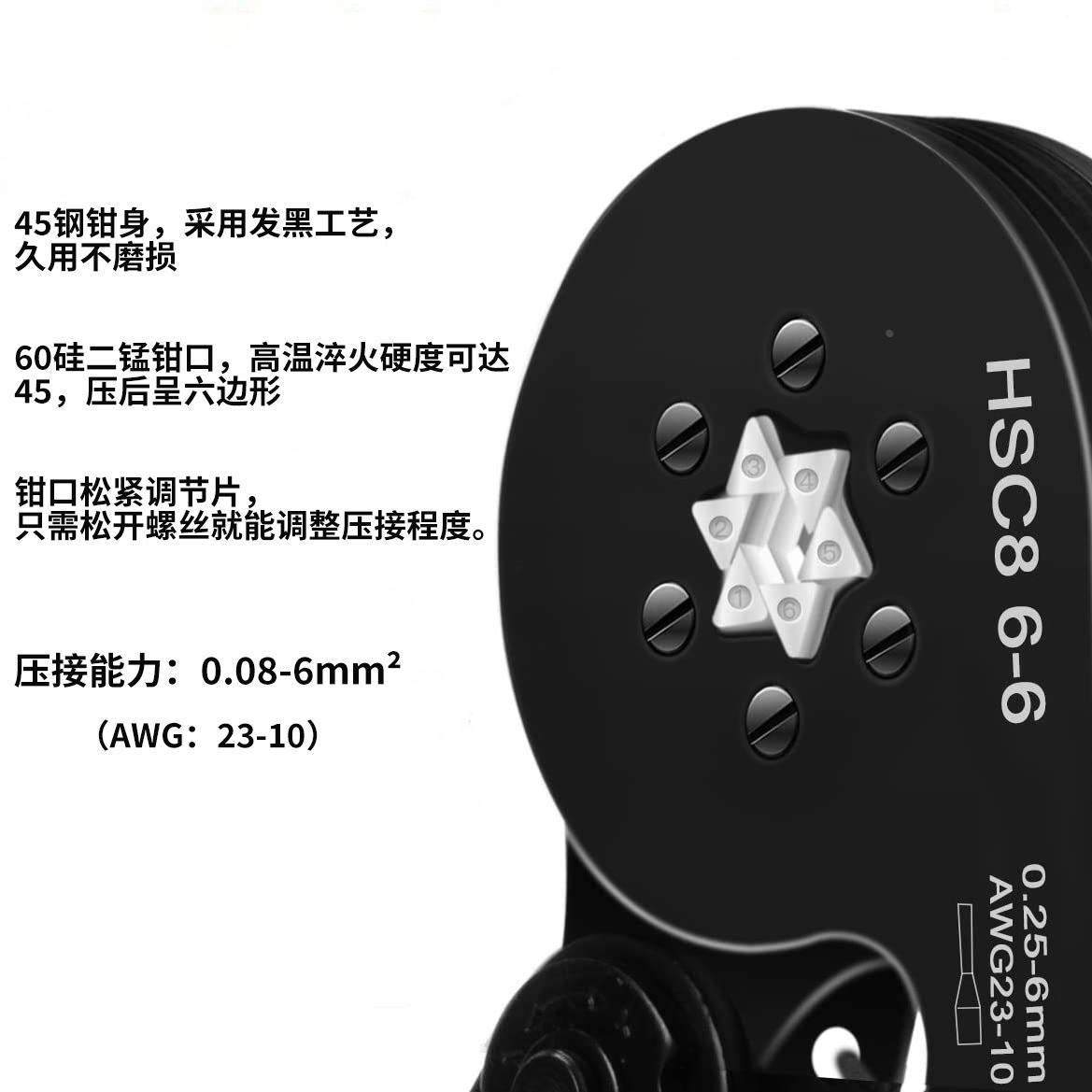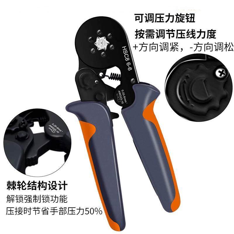 6边型压接钳冷压欧式 4针型压线钳4 压线钳 管型端子压线钳HSC8
