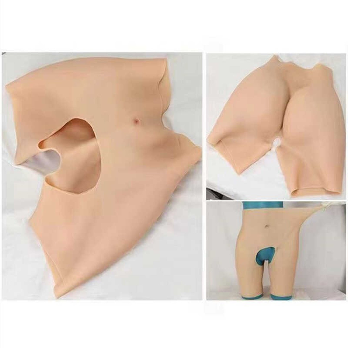 新款 植毛可插柔软隐藏jj内裤 男女主播变装 丰臀丰胯伪娘硅胶假阴裤