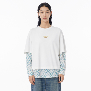 假两件撞布设计师短款 新款 MOVEUP幻走2023春季 T恤女 商场同款