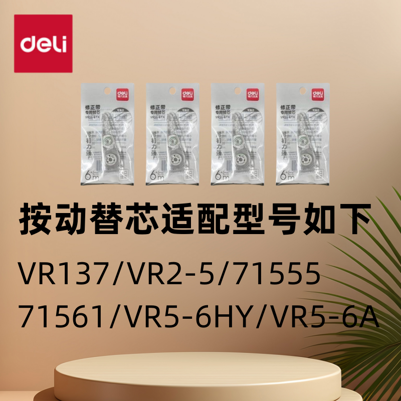 VR5 得力修正带替芯6m六米通用涂改错 71561 6TX适配71555 VR11