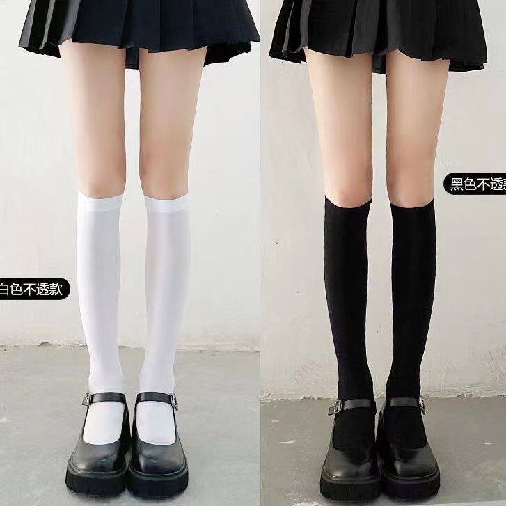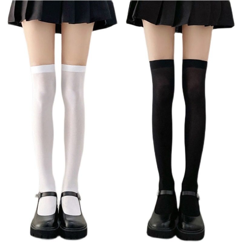 过膝袜春夏季 天鹅绒袜子女白丝袜长筒黑色jk大腿高筒ins潮夏 薄款
