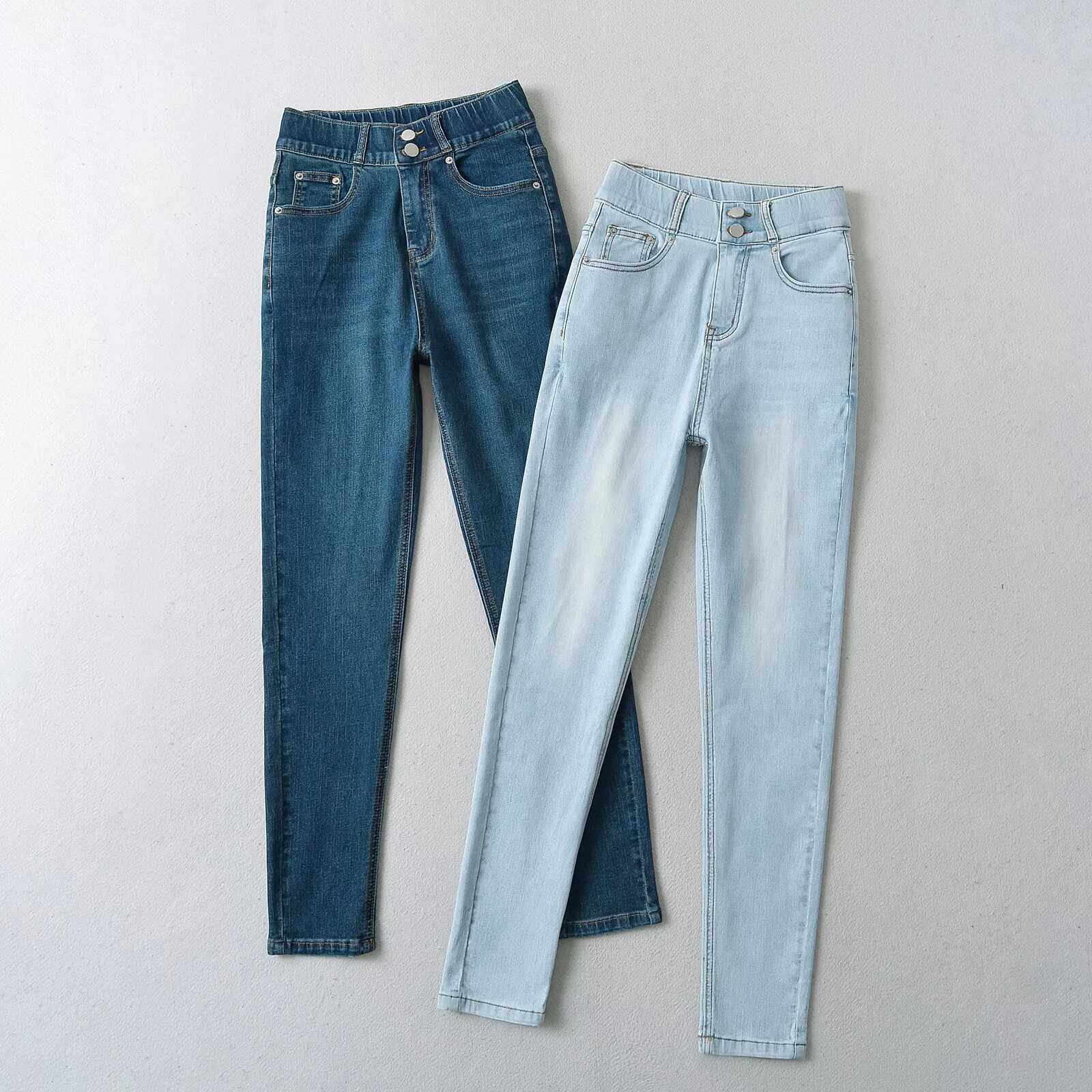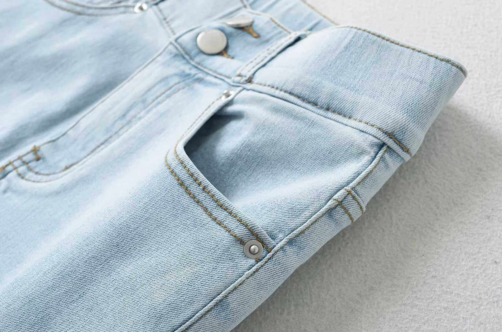 小脚九分铅笔裤 意大利小个子浅蓝色软糯盐系牛仔裤 女丰胯翘臀修身