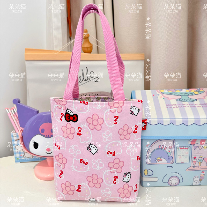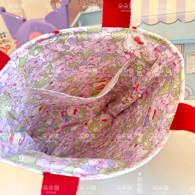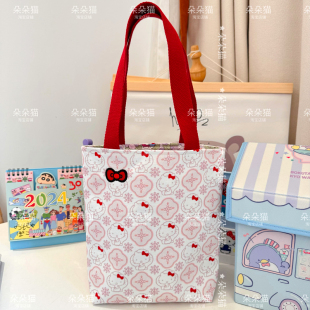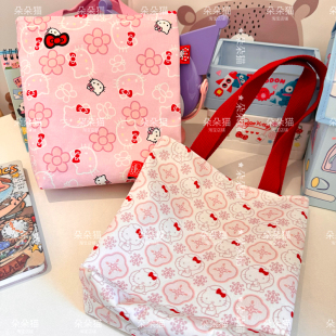 新款 手拎包包 少女心棉布印花刺绣蝴蝶结凯蒂猫手作便携单肩包女式