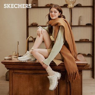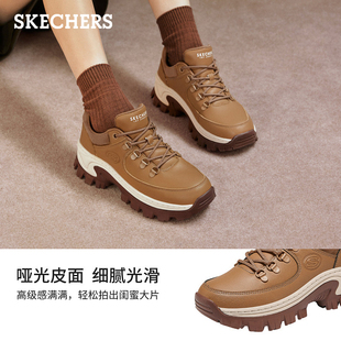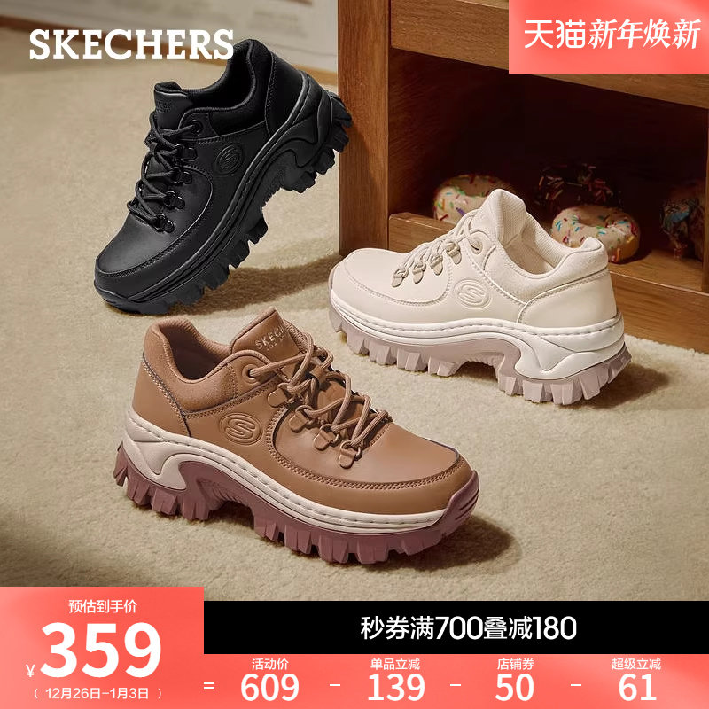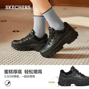 小个子休闲鞋 斯凯奇舒适百搭蜜糕鞋 秋冬女厚底增高皮面老爹鞋