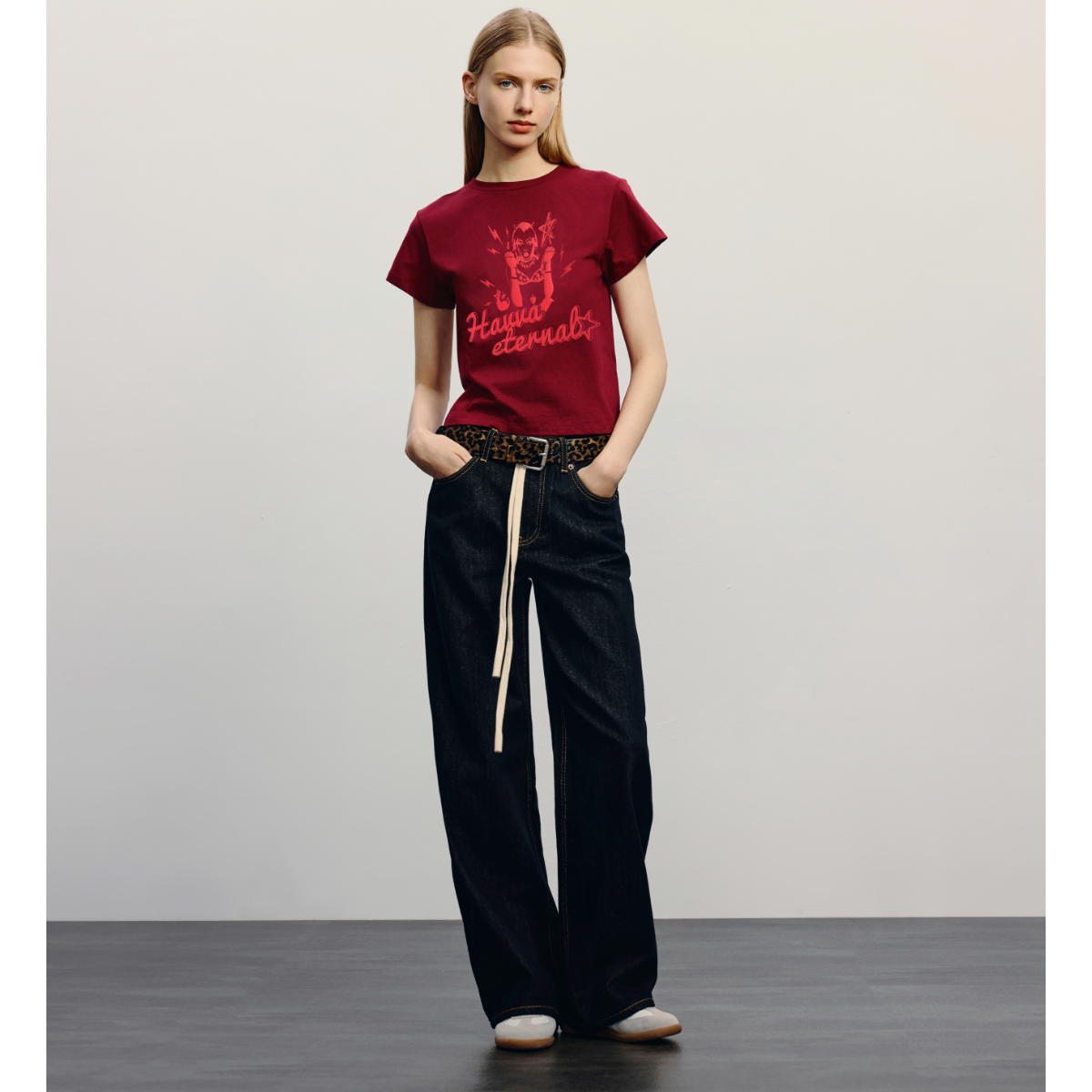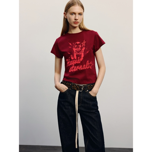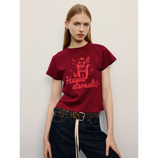 2025夏T3 HAVVA印花圆领短袖 长绒棉女士半袖 短款 11610 T恤正肩修身