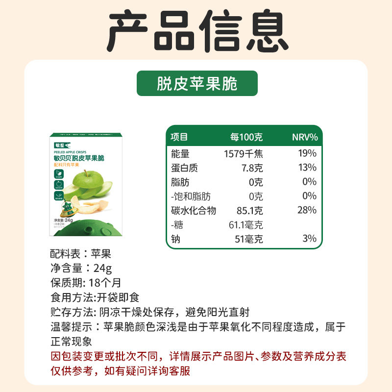 敏星脱皮苹果干脆片无蛋奶添加非油炸儿童休闲零食送宝宝婴儿食谱