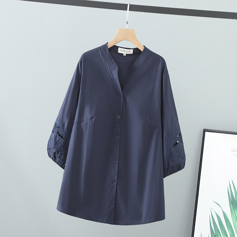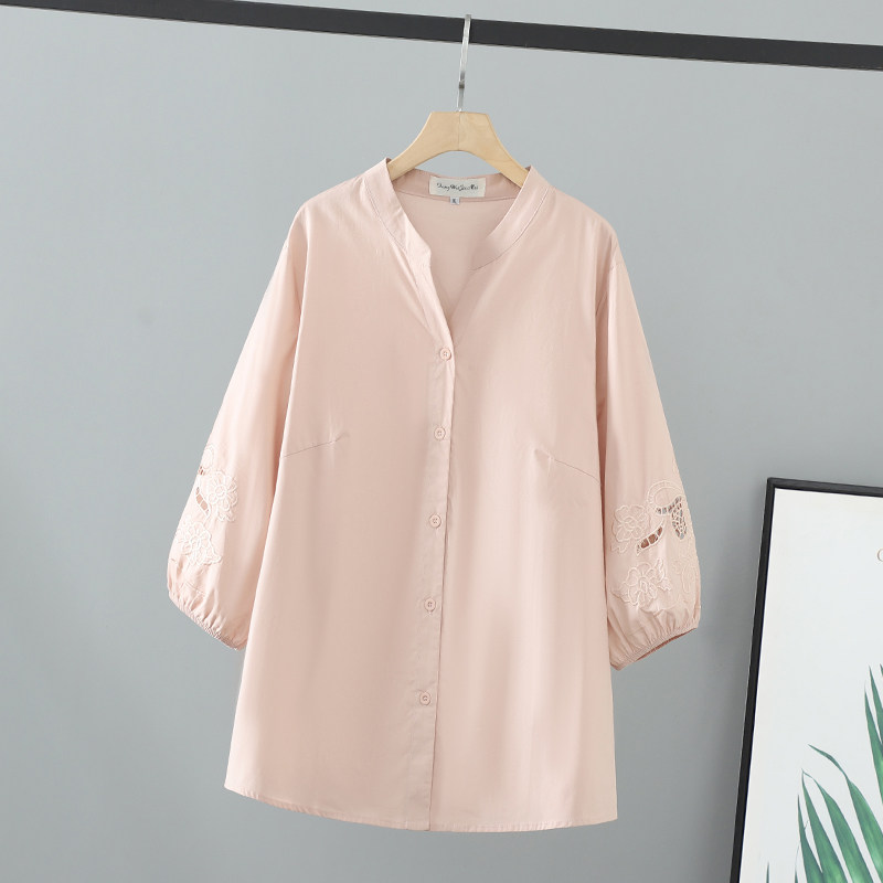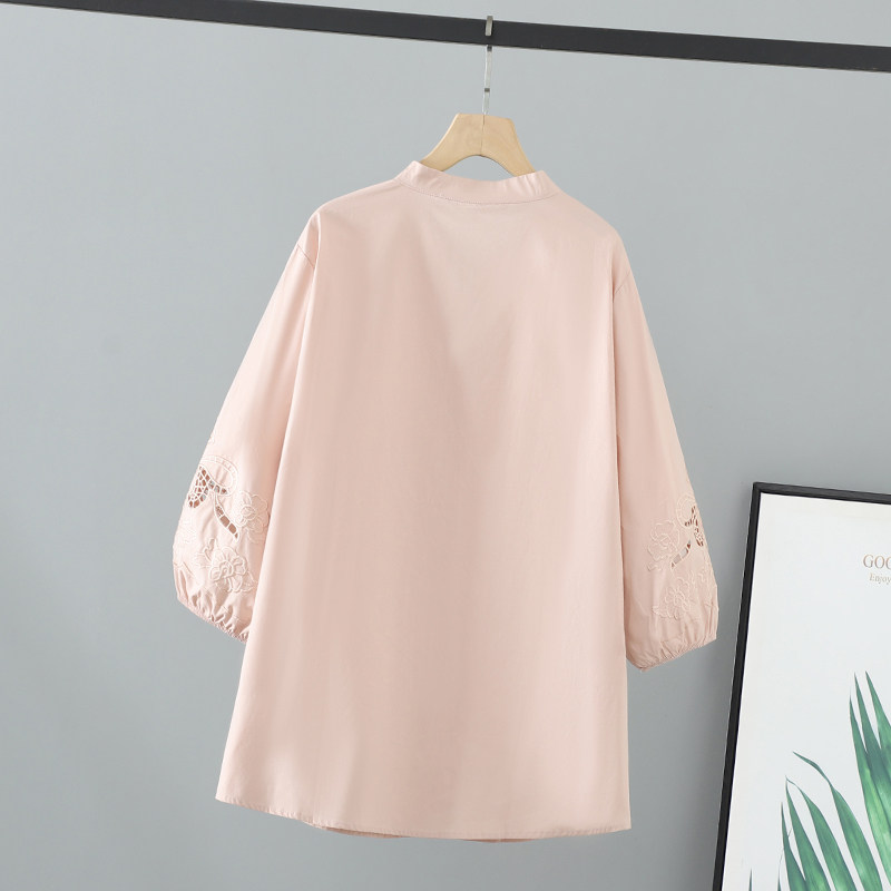 女装 炸街遮肉七分袖 胖mm夏装 女重工刺绣镂空大码 上衣 衬衫 2026新款