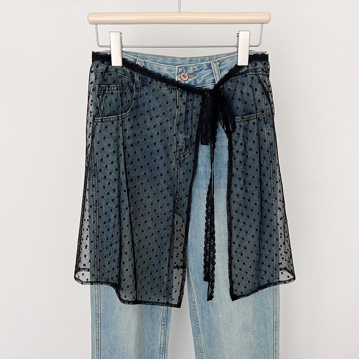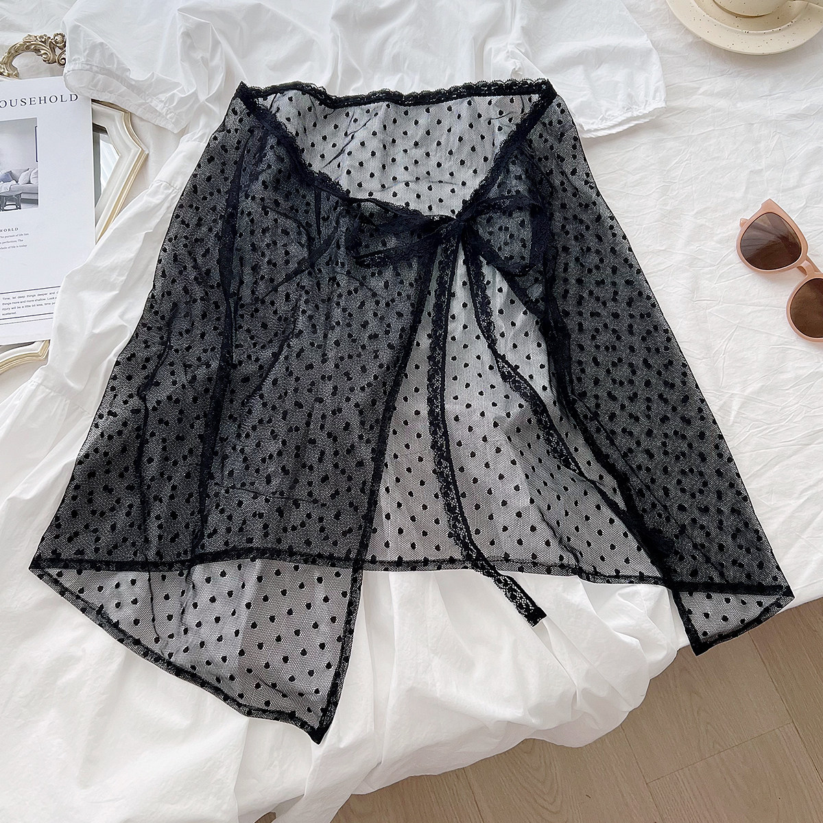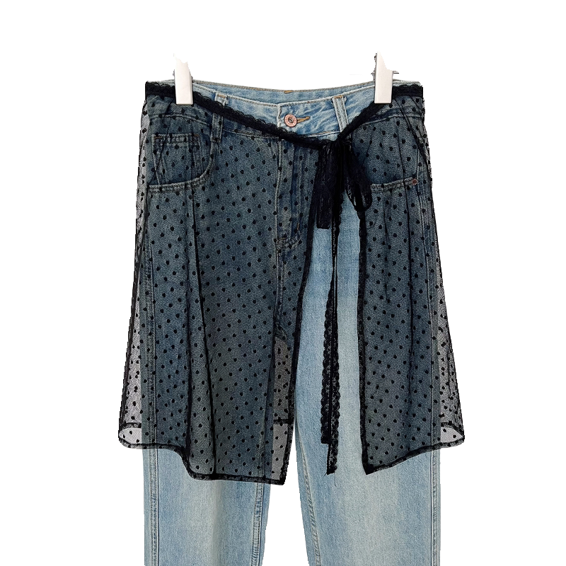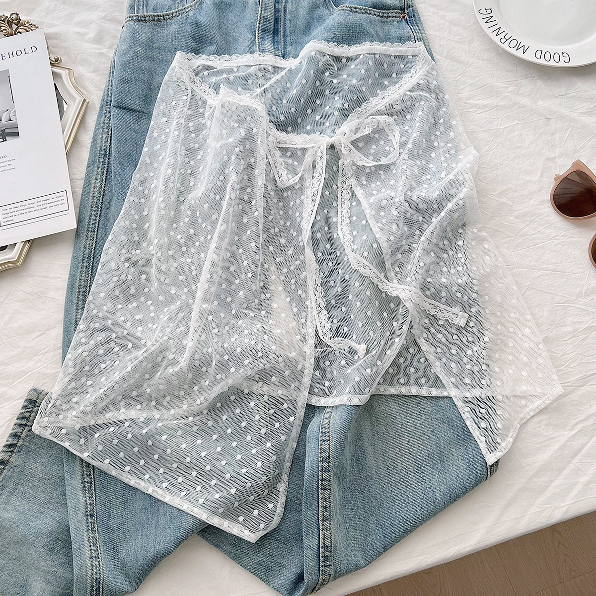 韩国小众设计春夏季 百搭屁帘叠穿罩裙波点裙帘 蕾丝半身裙女个性