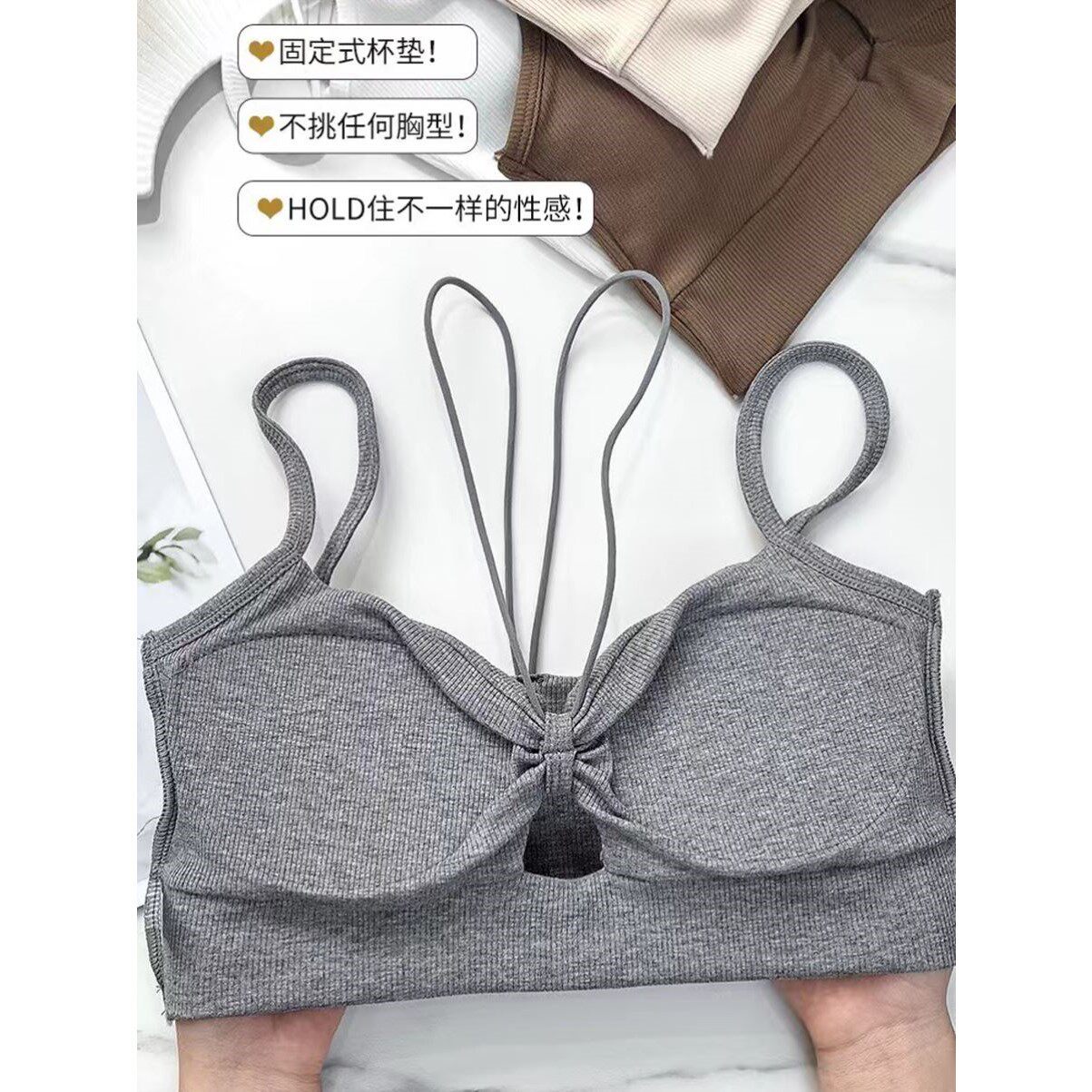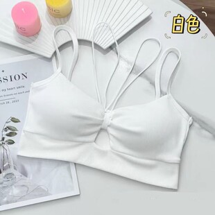 性感镂空挂脖带胸垫一体式 吊带背心女夏内搭美背交叉打底抹胸内衣