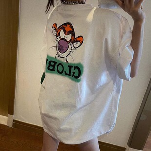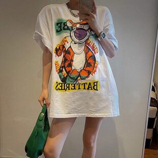 上衣 t恤女ins宽松小众半袖 纯棉美式 高街hiphop潮牌卡通跳跳虎短袖