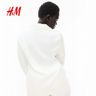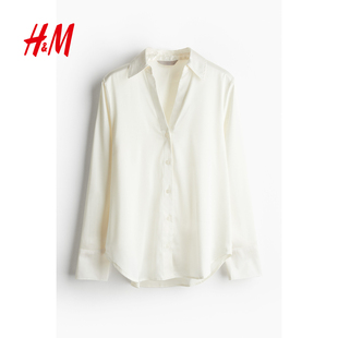 衬衫 上衣 冬季 通勤V领光泽感长袖 0939703 空调衫 HM女装