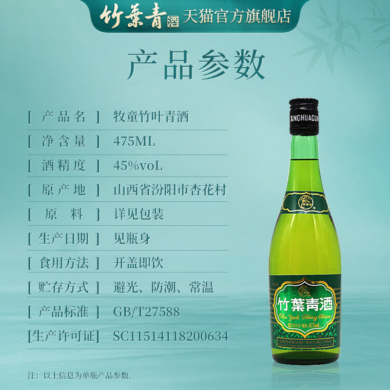 竹叶青牧童竹45度475mL6瓶露酒汾酒杏花村原箱送礼 口粮优选