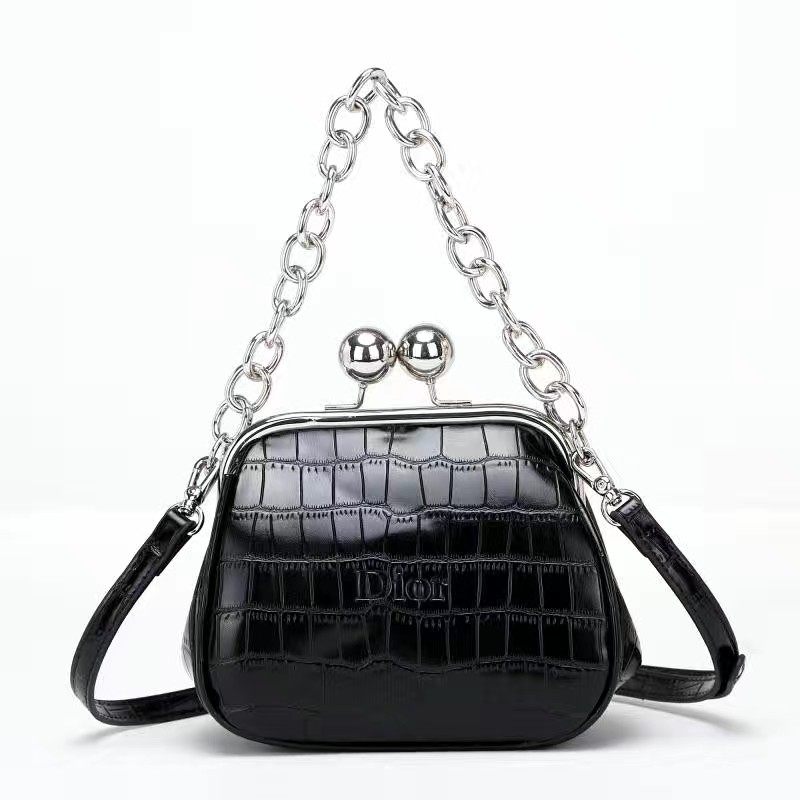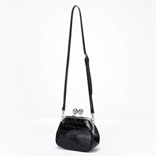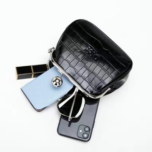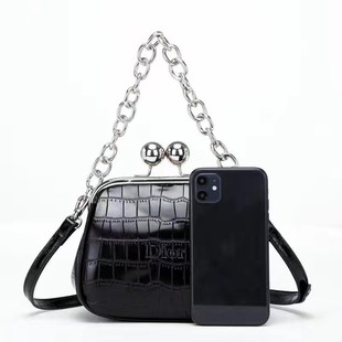 口金夹子包时尚 斜挎小包鳄鱼纹PU皮手拎链条朋克风百搭迷你手机包