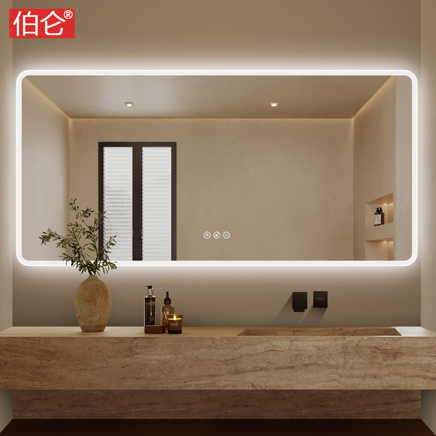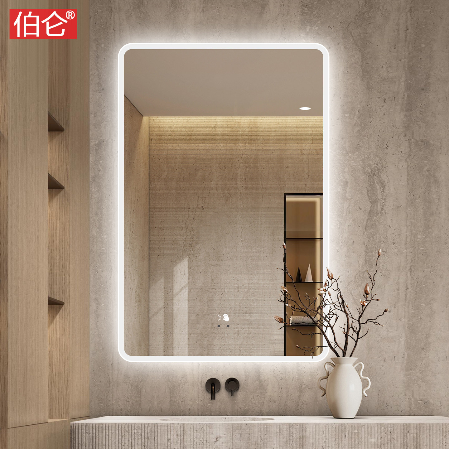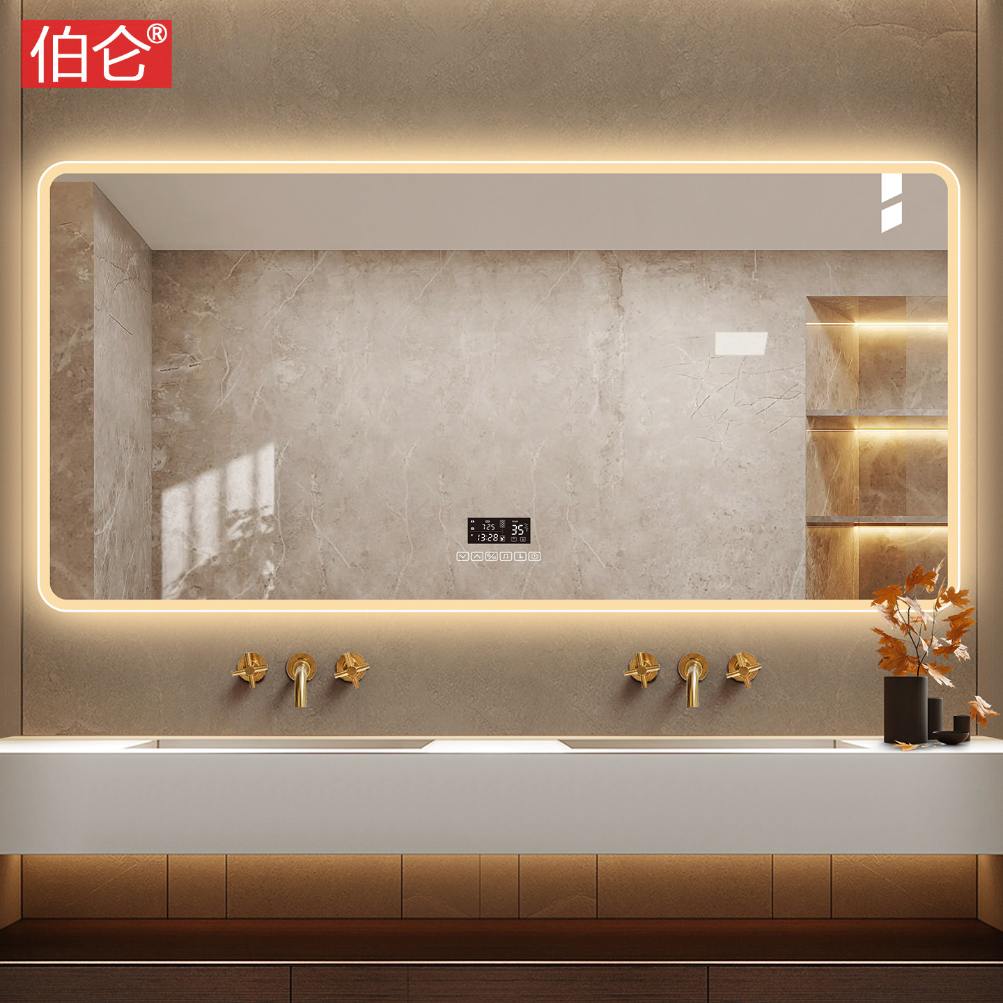 伯仑 高亮COB灯带浴室镜卫生间智能镜子壁挂洗漱台除雾梳妆镜防水