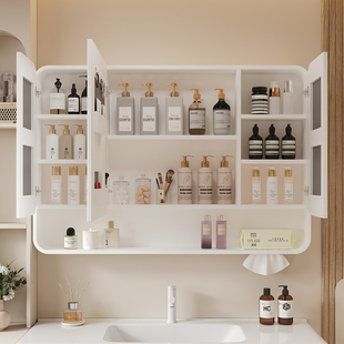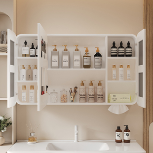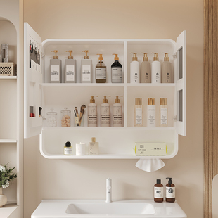 浴室镜柜简约挂墙式 镜箱收纳分层架洗手间梳妆防水镜子卫生间