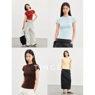 内搭 正肩女夏季 TINGE贴己多巴胺T恤修身 显瘦圆领上衣运动短袖