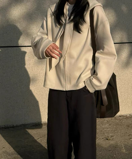 连帽卫衣女IN FEMME双层织法天然长绒棉2025春季 小桃同款