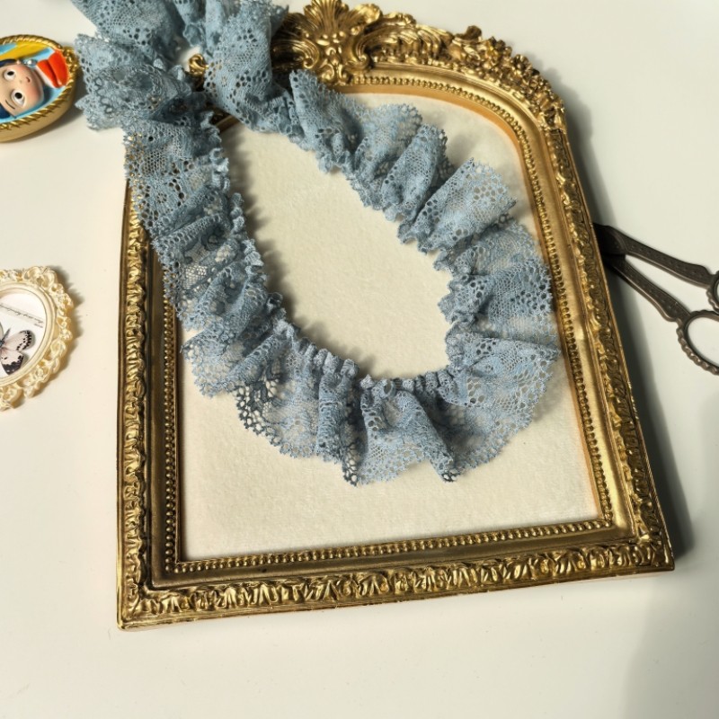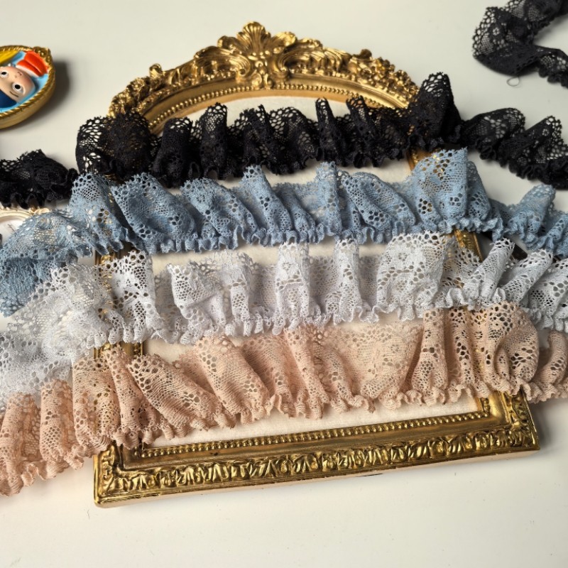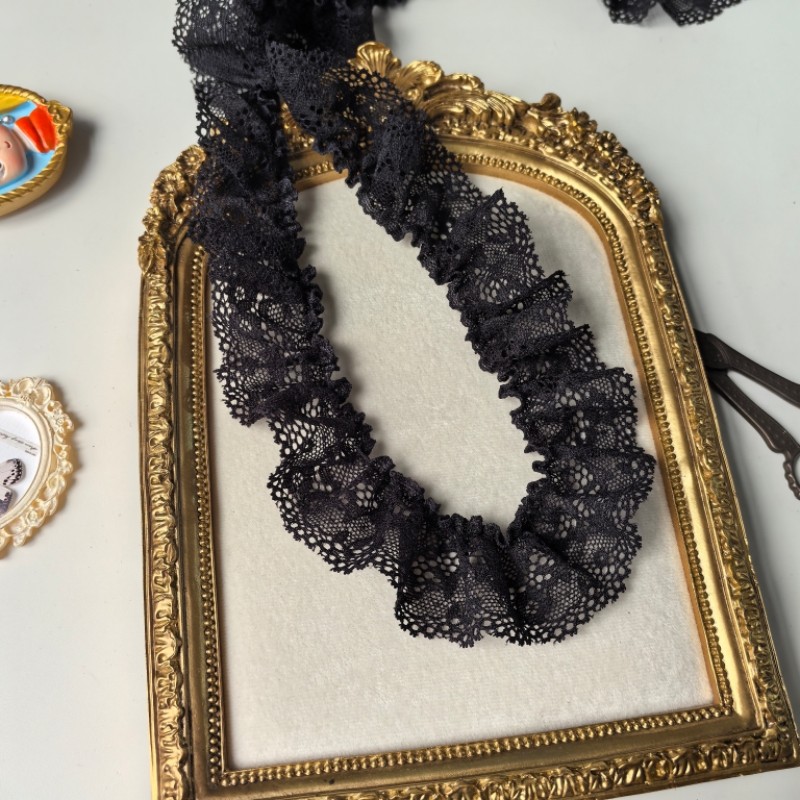 黑白色钉珠裙摆领子袖 口芭比娃娃衣服窗帘压褶百褶子蕾丝花边辅料