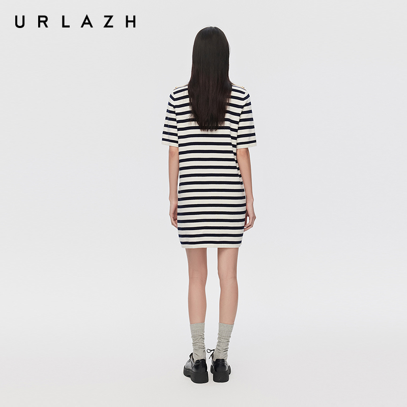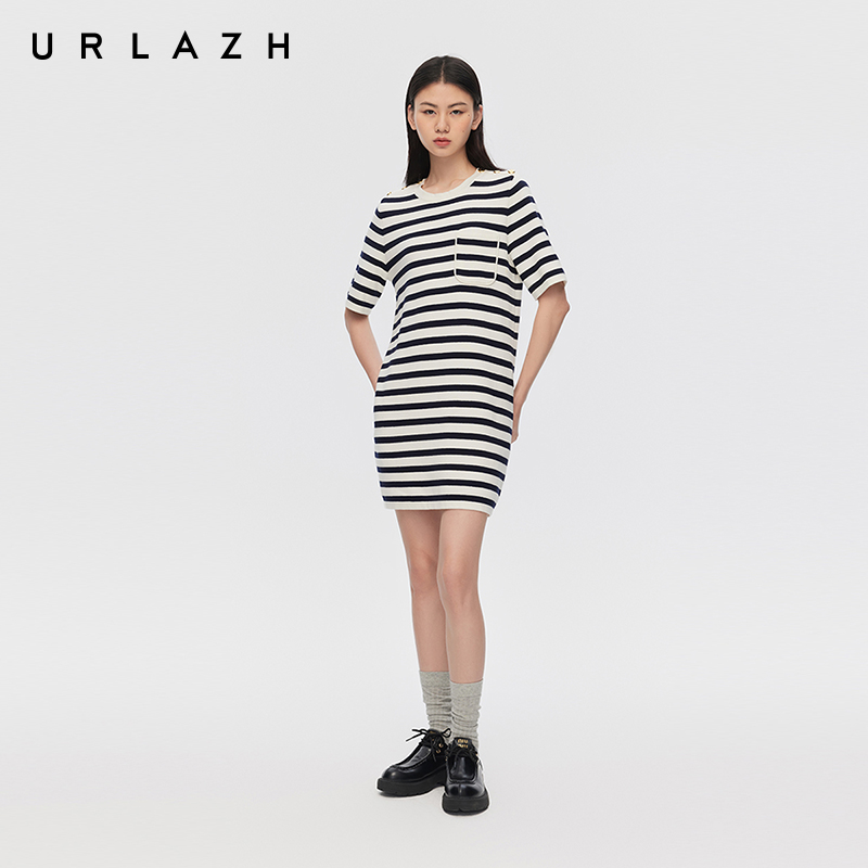 简约法式 新款 条纹慵懒宽松直筒连衣裙 URLAZH有兰2025秋季 商场同款