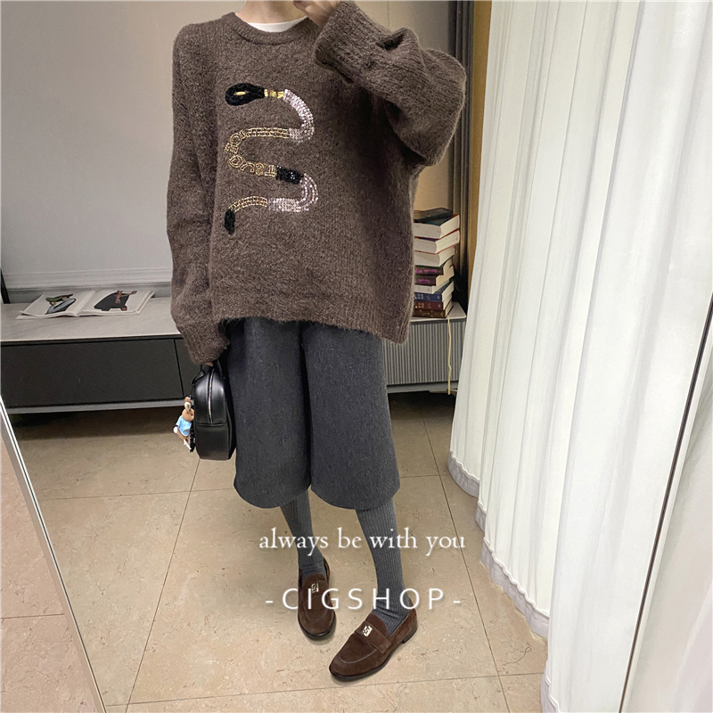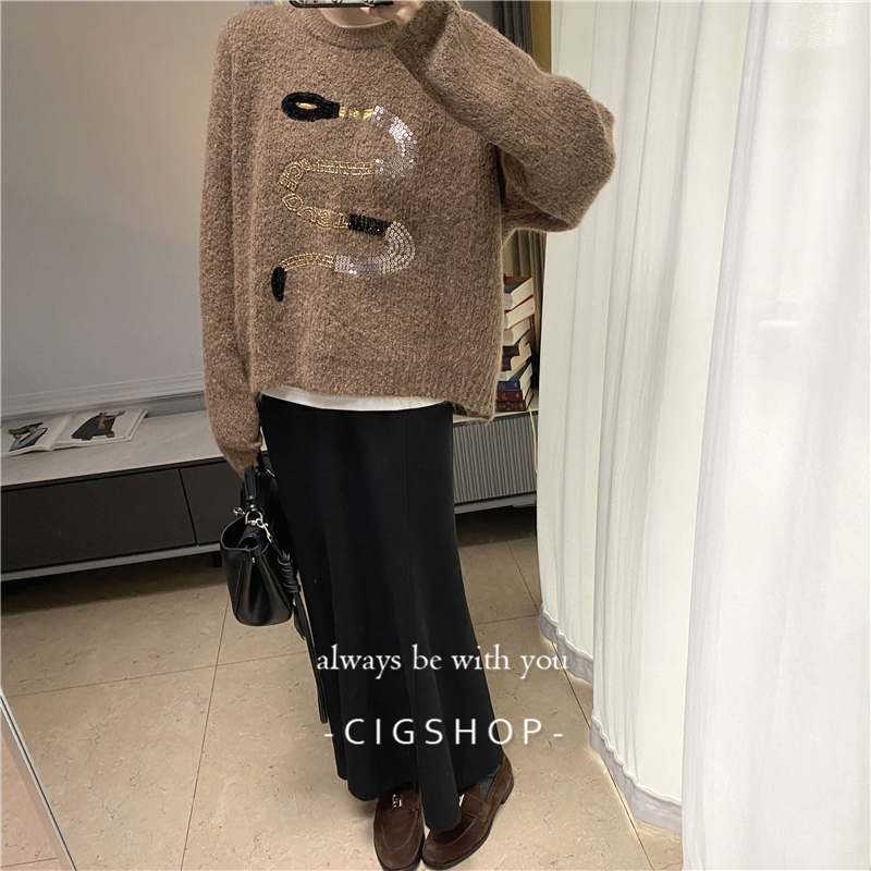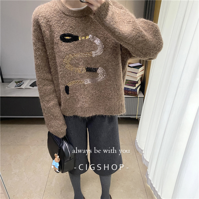 高级感上衣宽松打底针织衫 圆领100%纯山羊绒衫 女高端毛衣秋冬新款