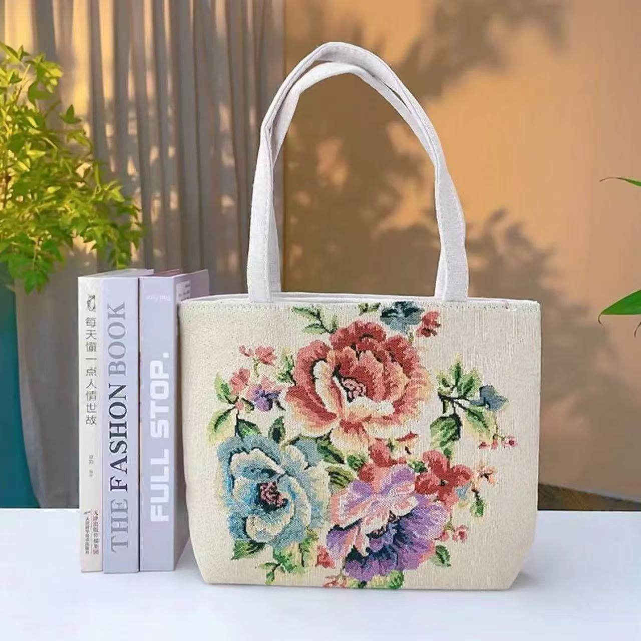 民族风双面金丝手提帆布小包耐磨时尚 刺绣带拉链手提包手拎 百搭款