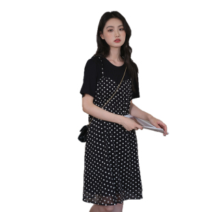 新款 假两件吊带碎花裙胖MM2026夏装 收腰遮肚连衣裙 女装 蓝若水大码