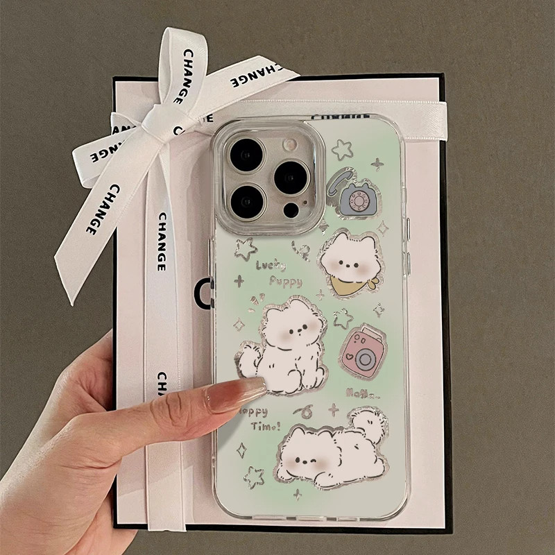 薄荷绿小白狗女款 适用苹果16Promax手机壳iPhone15Pro13小米14华为mate60P70K80Reno12nova11荣耀200s20 新款