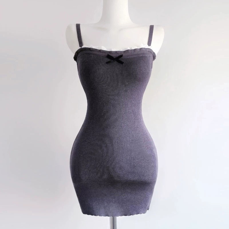 VOCK 百搭时髦辣妹紧身收腰内搭连衣裙纯欲针织包臀裙子 复古滤镜