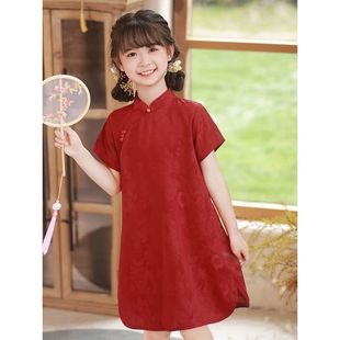演出服汉服 中国中式 红色旗袍女童礼服新款 送考小女孩连衣裙夏季