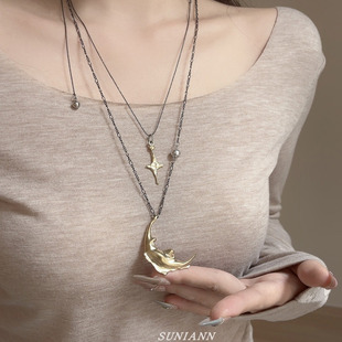 复古做旧星星月亮吊坠精致清冷感新中式 颈链 叠戴长项链锁骨链长款