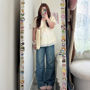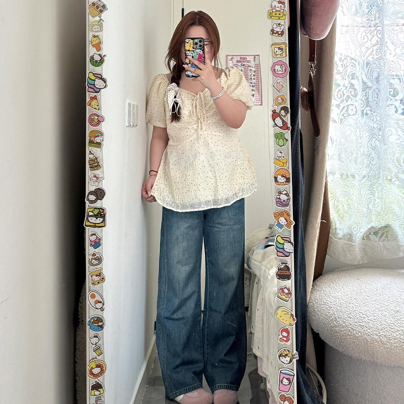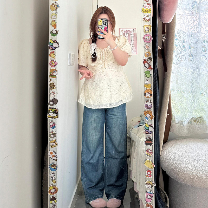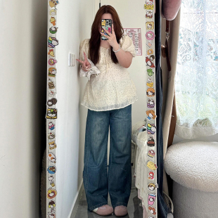 衬衣女胖mm少女感甜美风泡泡袖 波点短袖 学生上衣 法式 300斤特大码