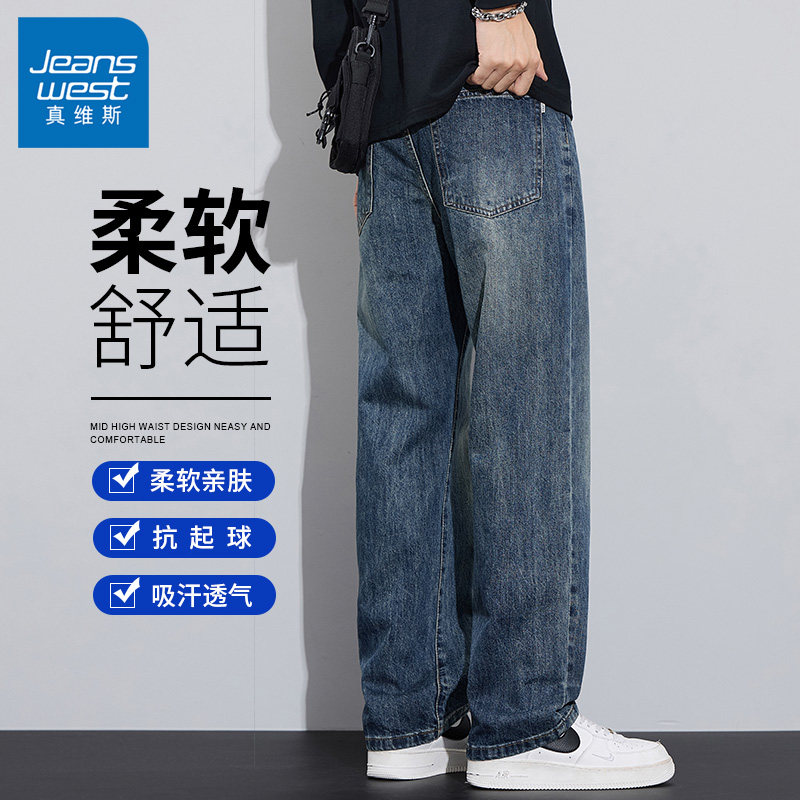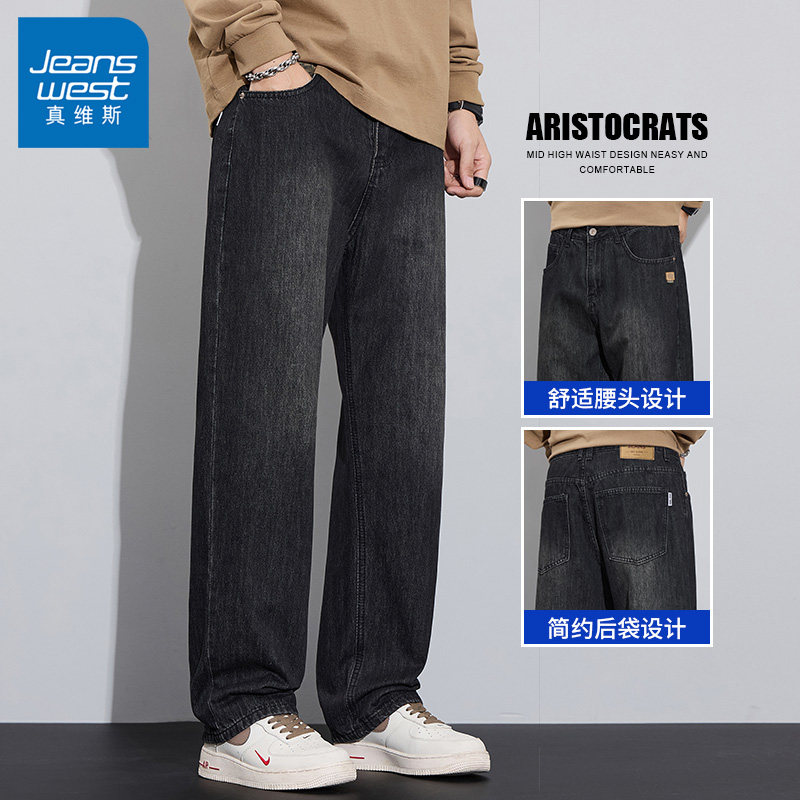 秋冬加绒直筒宽松加厚百搭宽松男生裤 潮牌男款 子 牛仔裤 真维斯男士