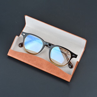 日系复古眼镜盒PU皮手工镜盒便携抗压墨镜太阳镜盒侧翻盖圆筒镜盒