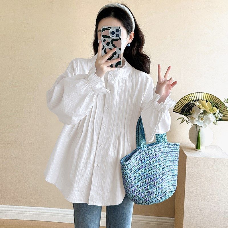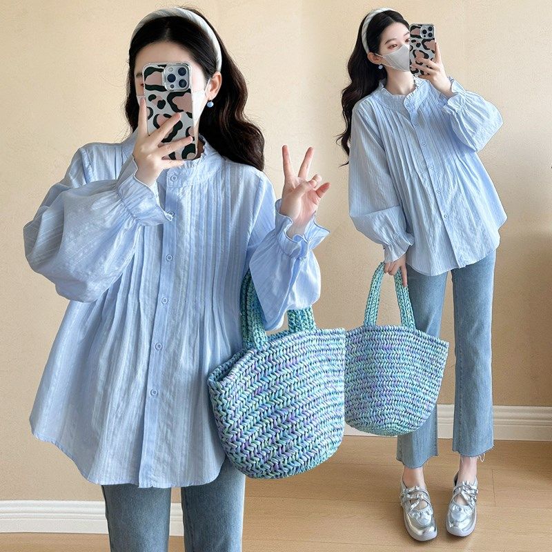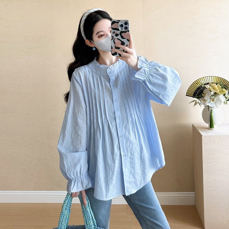 褶皱长袖 时尚 衬衫 宽松大码 简约衬衣春 孕妇装 休闲怀孕上衣春季 春装