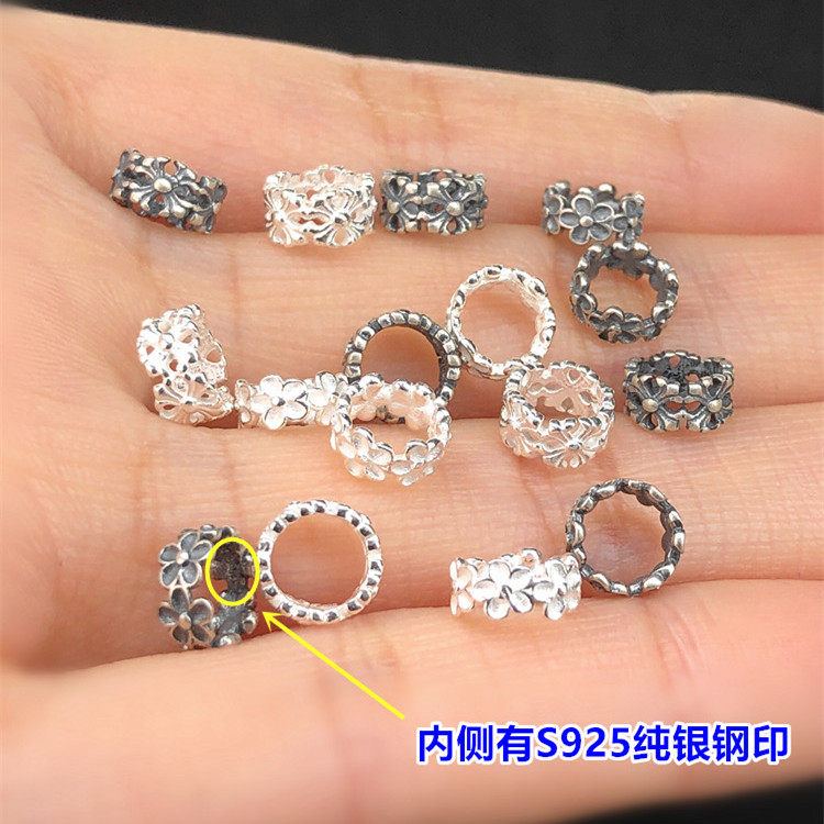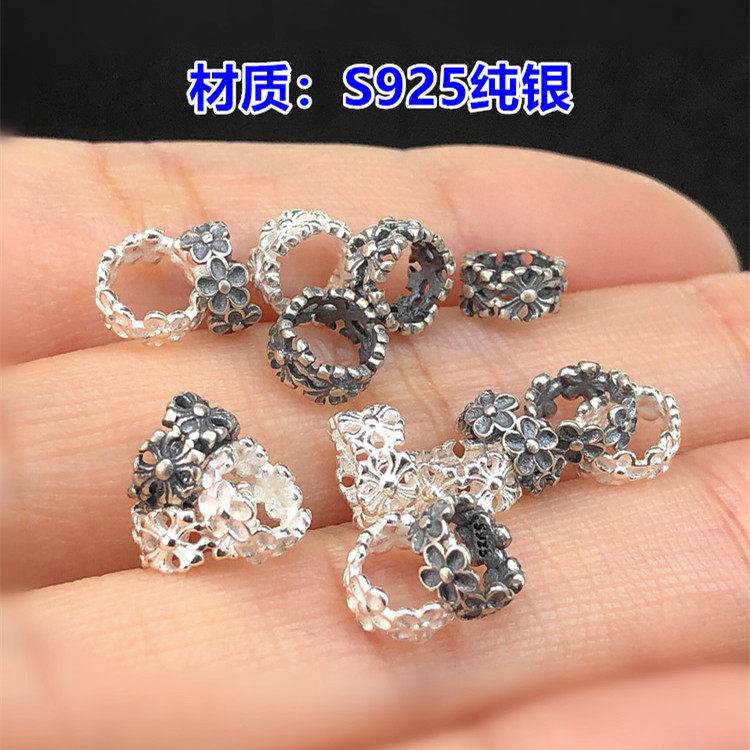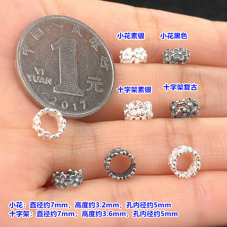 s925纯银素银小花十字架隔珠隔片水晶手串编手绳项链手工diy配件