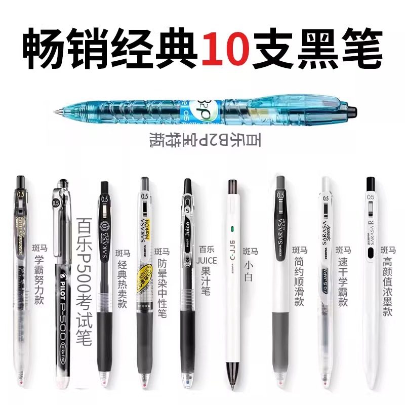 笔高颜值签字笔碳素笔 中性笔一体式 直液式 巨能写速干考试笔直液式
