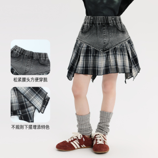 新款 女童短裙子2026夏季 儿童甜酷牛仔拼接半身裙 夏装 布丁哈鲁童装