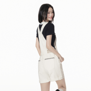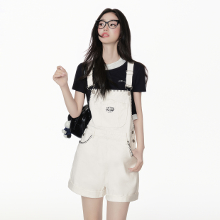 直筒复古学院风白色休闲裤 新款 子 女2026夏季 EPTISON牛仔背带短裤