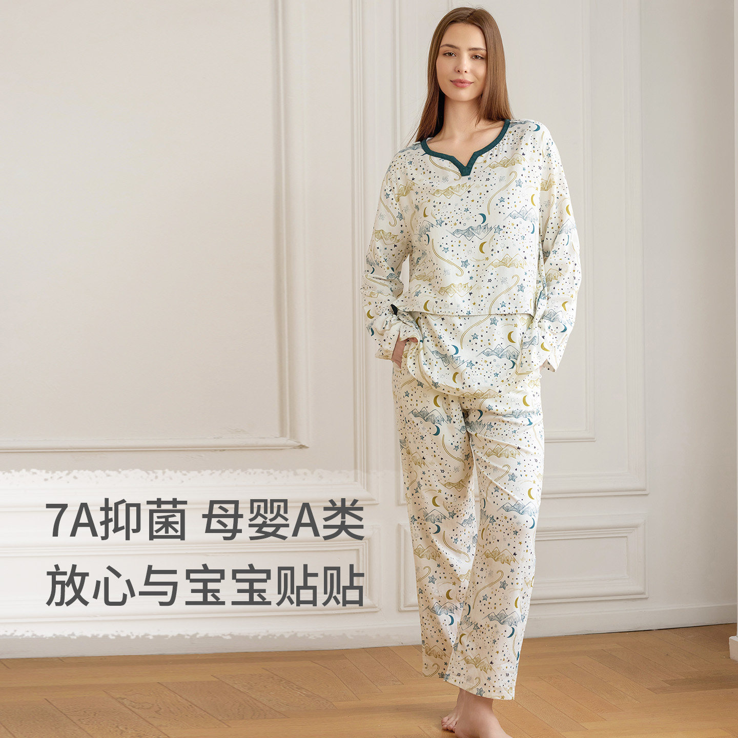 产妇家居服套装 长裤 Designs孕妇月子服哺乳睡衣女竹棉长袖 Nest