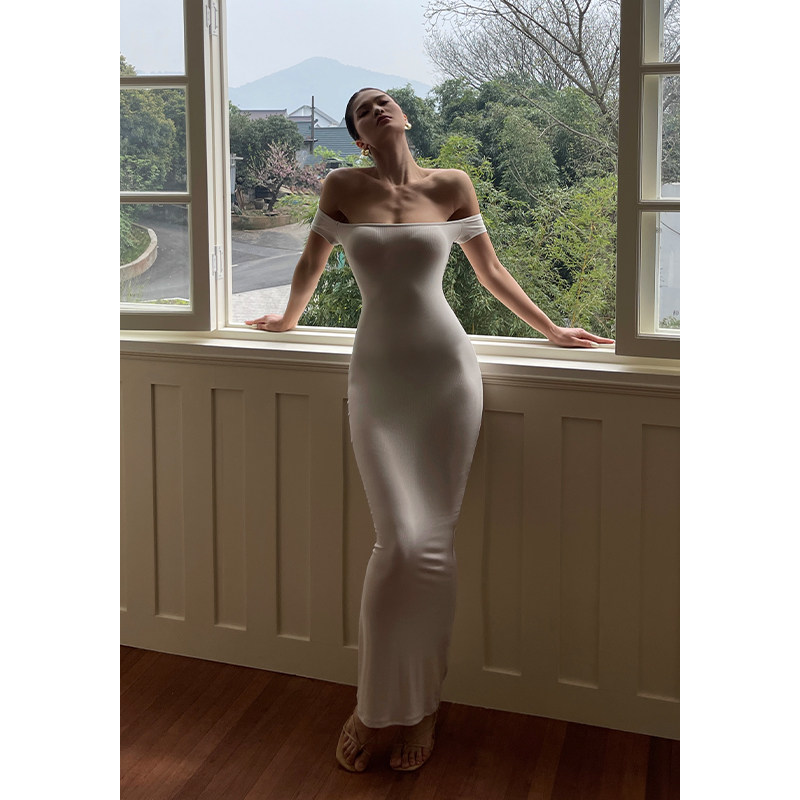 性感高腰修身 新款 气质一步裙 ins一字领包臀鱼尾连衣裙女夏季 井也
