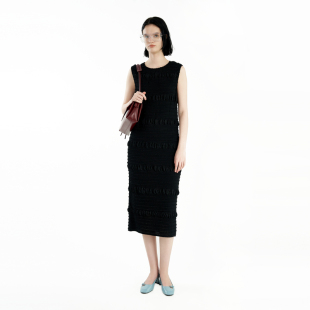 泡泡纱直筒连衣裙女R420688176D IIIVIVINIKO夏季 重工压褶