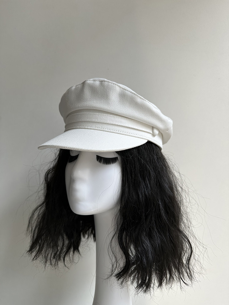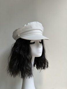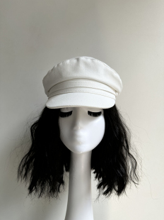 原创小头女帽休闲英伦平顶短檐水手帽春夏报童帽高品纯棉白色海军
