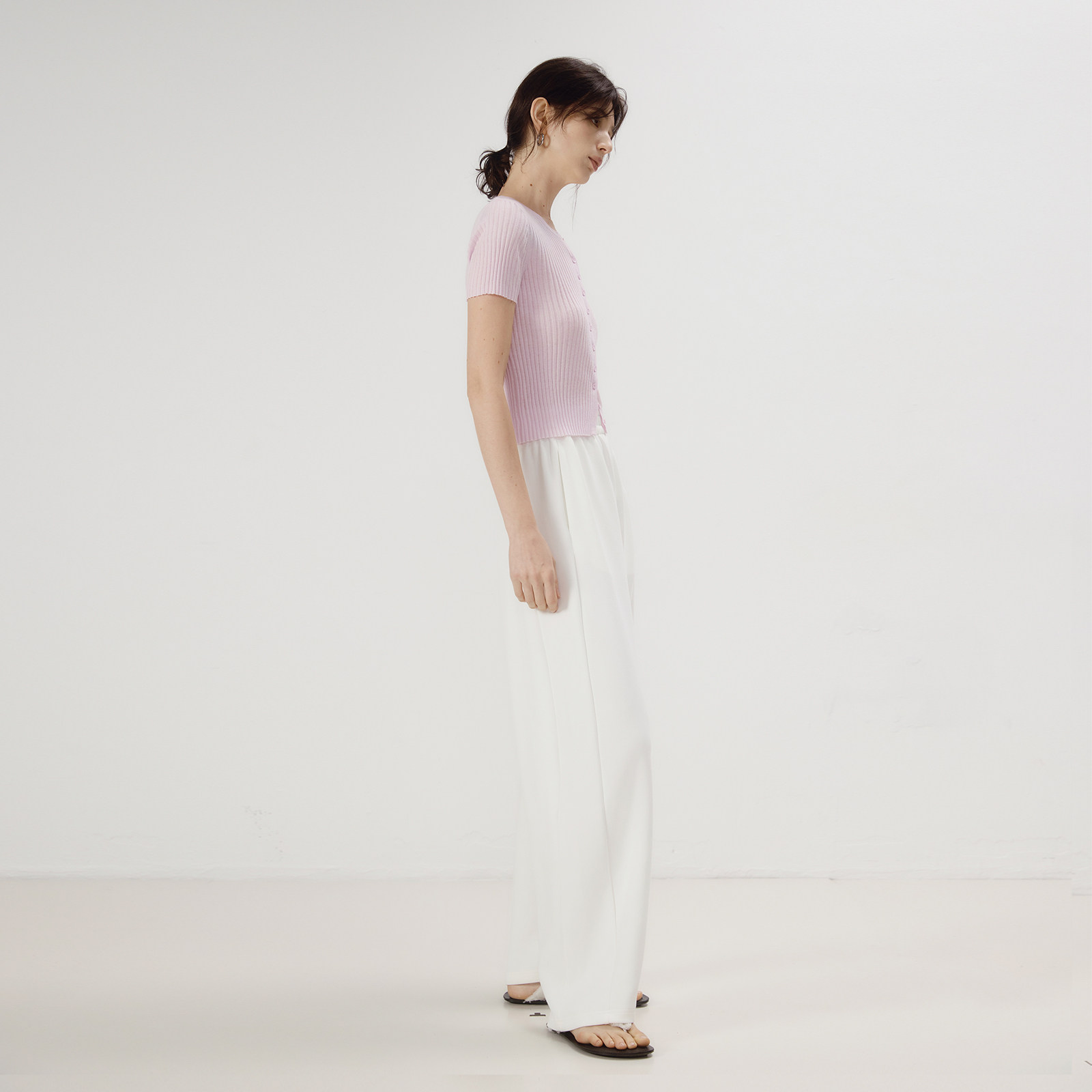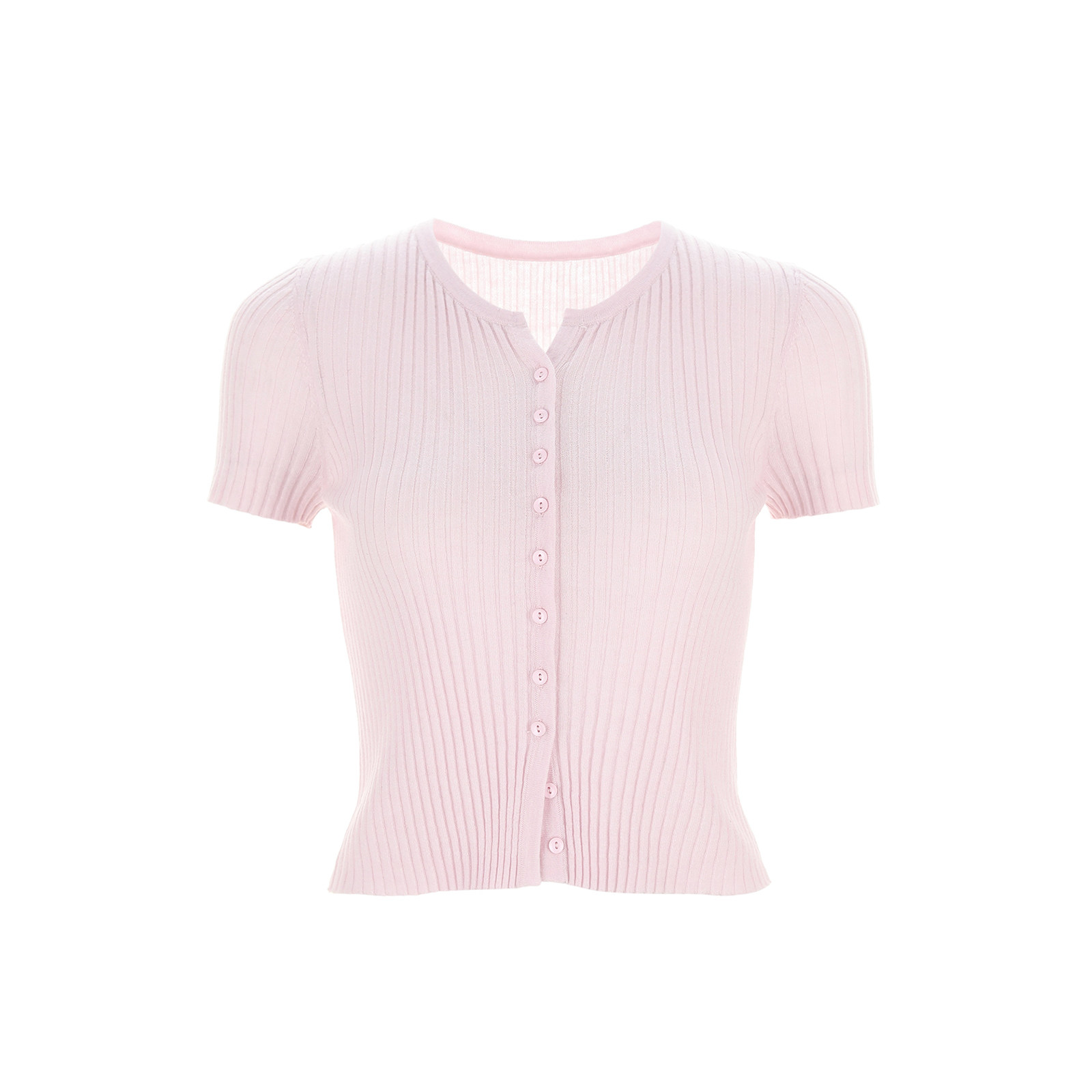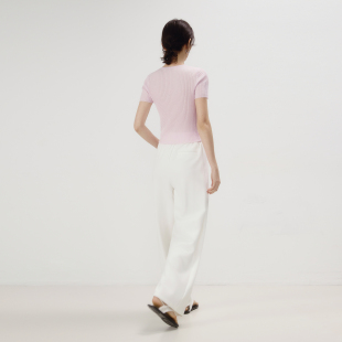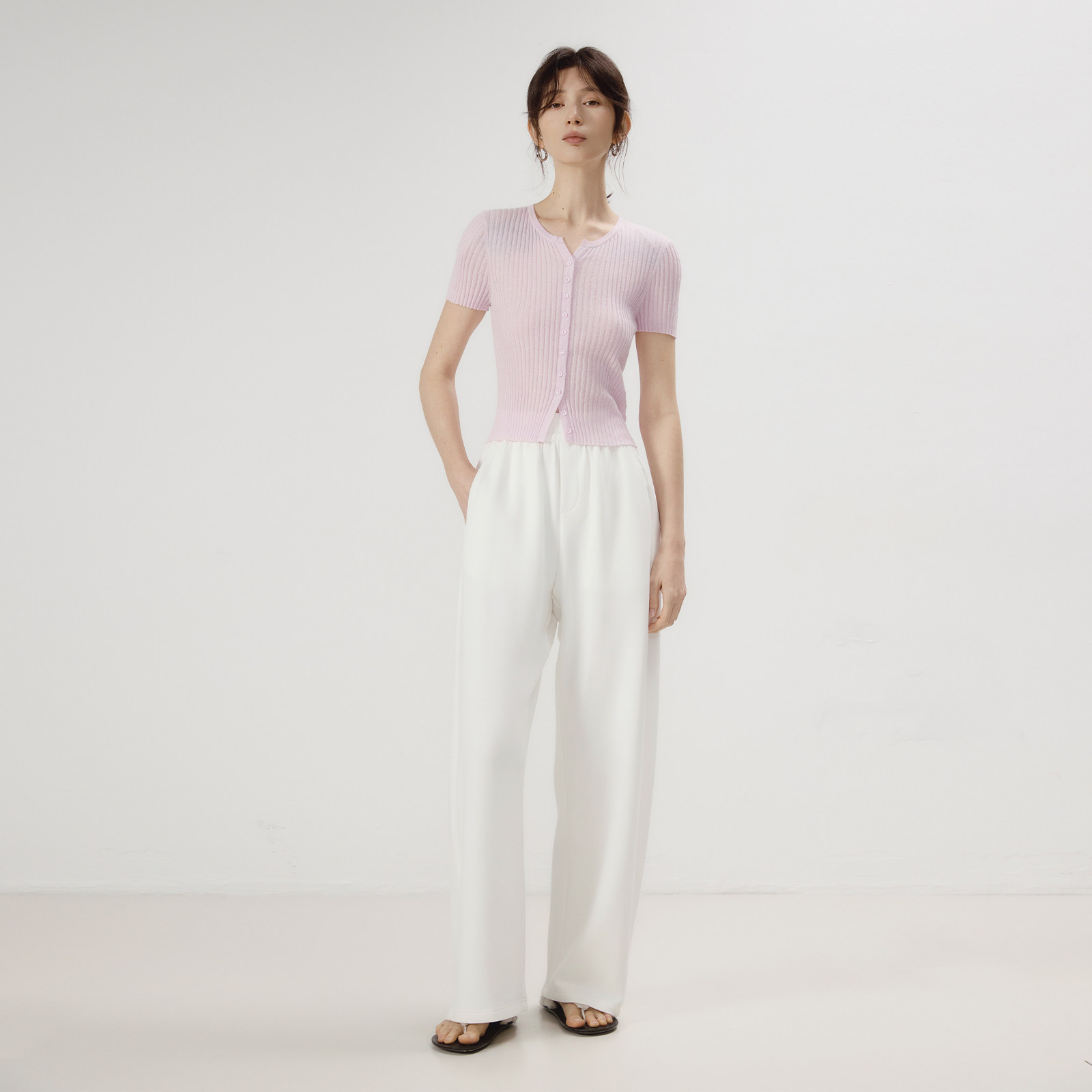 try简约坑条纸片人针织短袖 显瘦五分袖 开衫 新款 上衣 夏季 wana