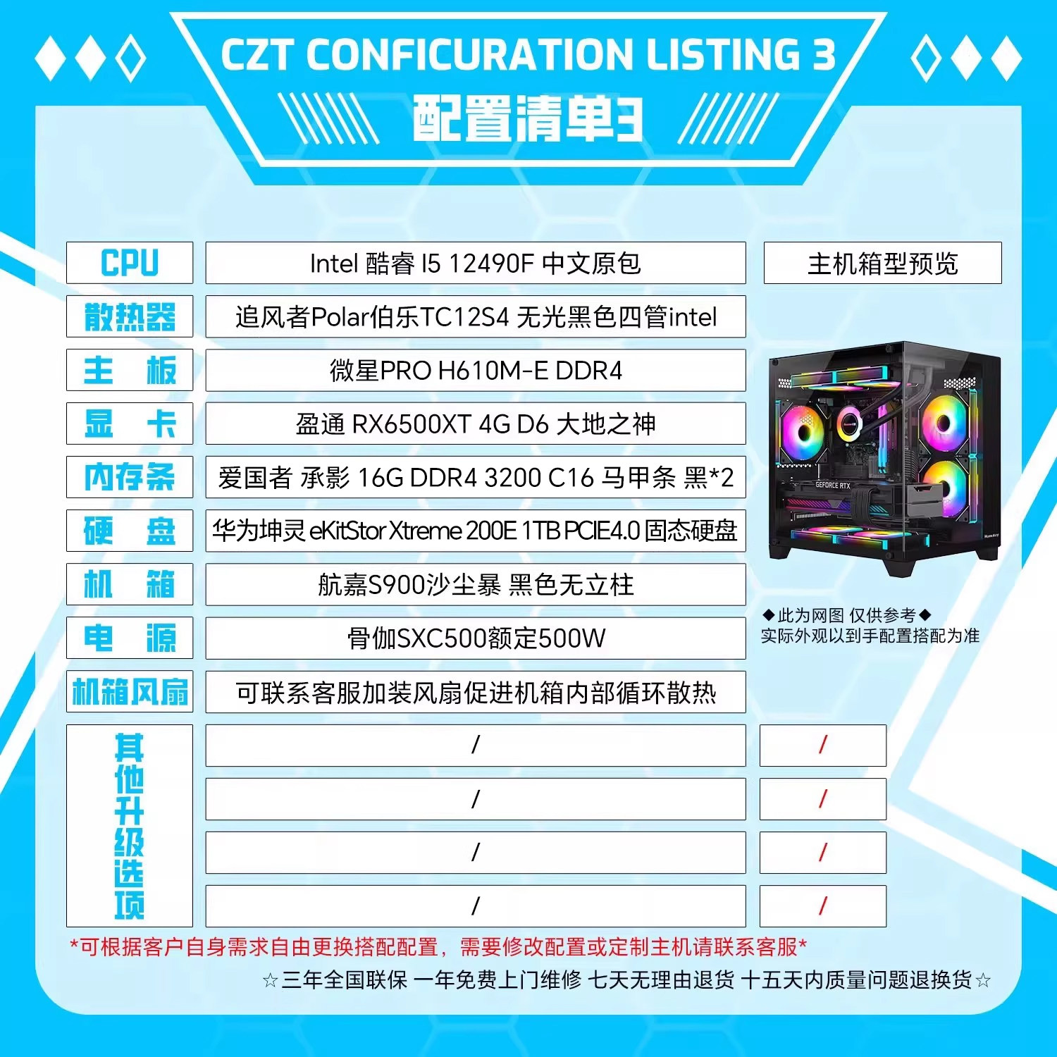 游戏轻办公电竞台式 3900——5200价位 主机 操作台CZT精选