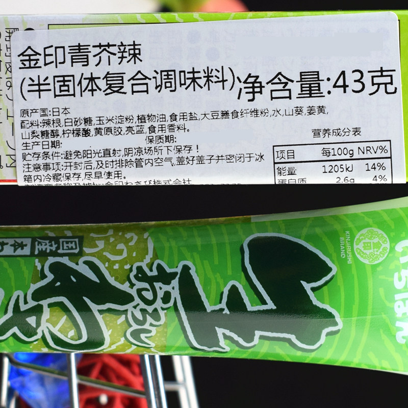 日本进口金印青芥辣酱 调味料寿司鱼生海鲜刺身辣根山葵芥末膏43g