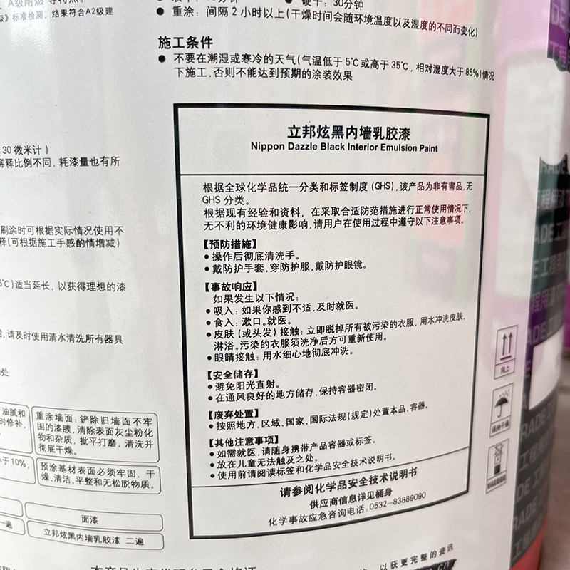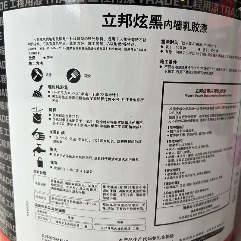立邦炫黑乳胶漆内墙天花黑色棚顶墙面漆环保内墙涂料纯黑色哑光漆