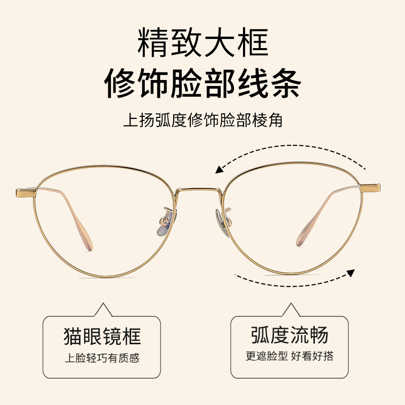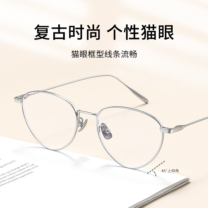 猫眼近视眼镜框女中性防蓝光镜 超轻纯钛时尚 meredith carin more