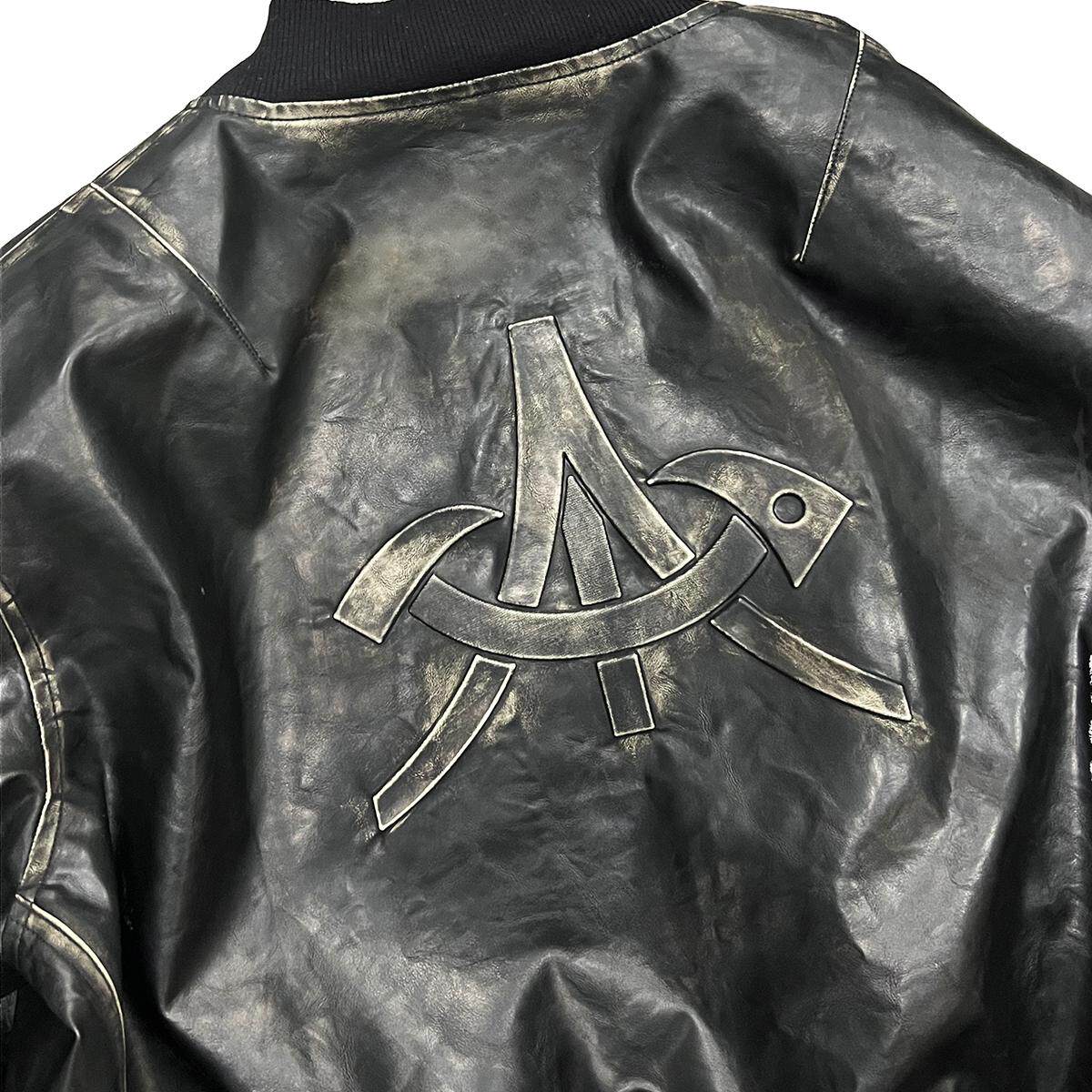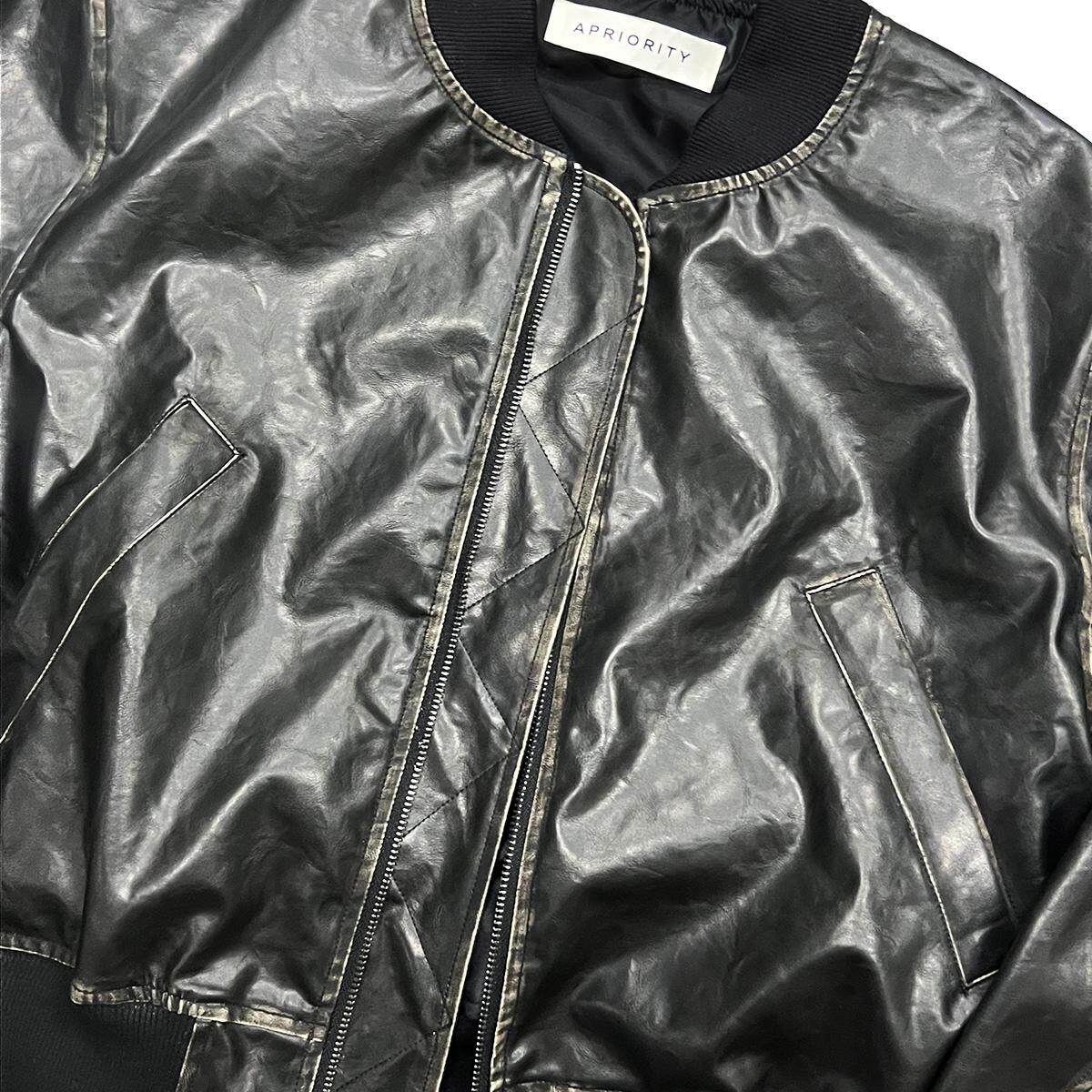 APRIORITY先验 黑色擦色做旧凹凸压制印花MA1皮衣夹克