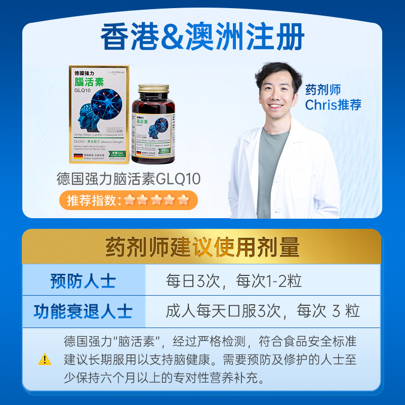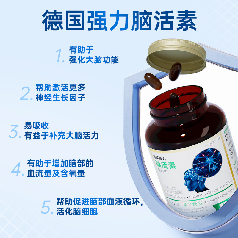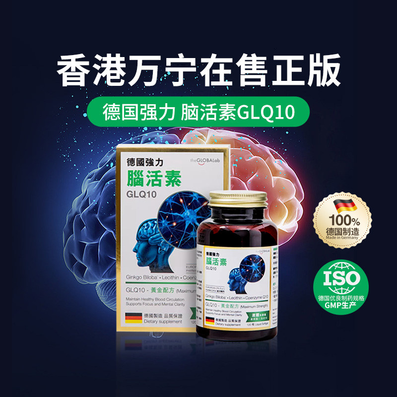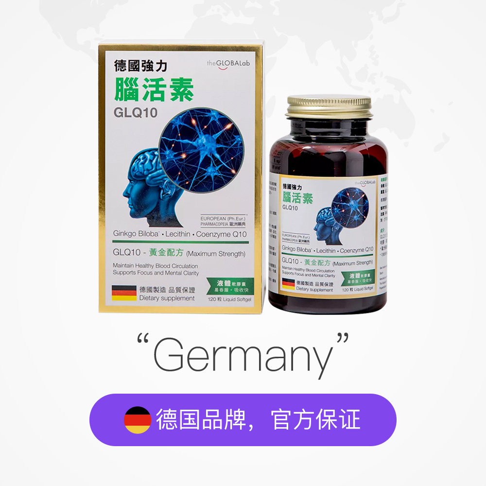 4瓶 theGLOBALab德国进口强力脑活素GLQ10脑力补脑120粒 自营