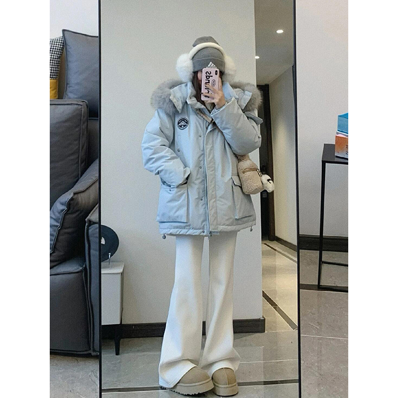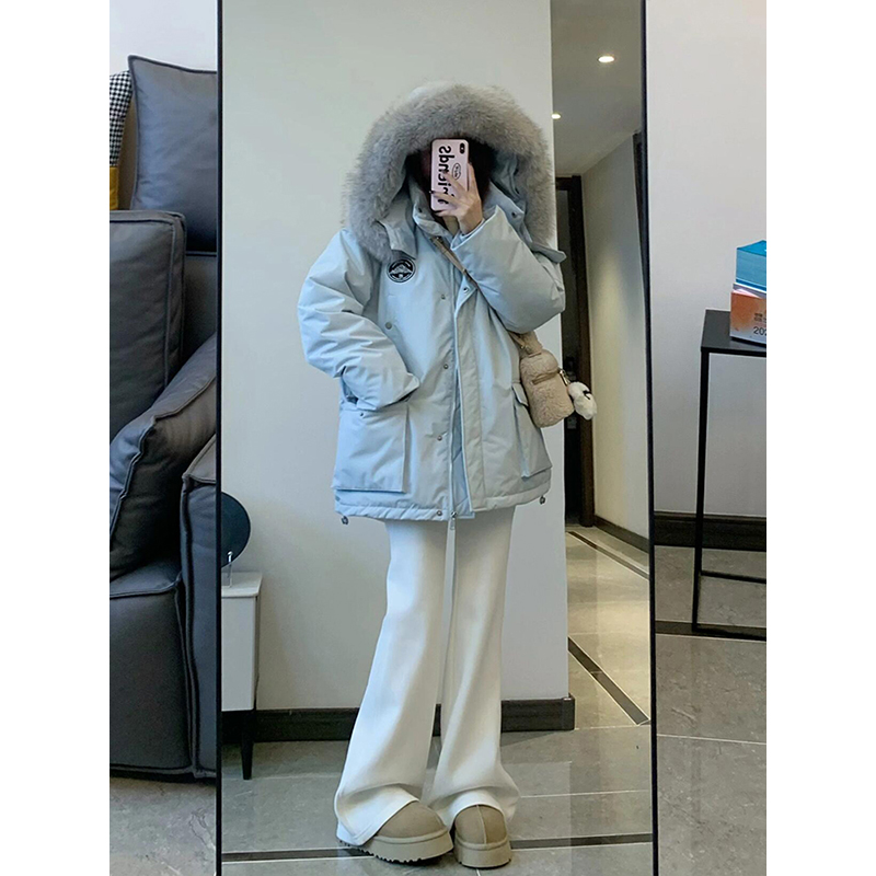 派克服女蓝色高级感保暖冬装 胖mm加厚工装 外套棉服 女装 300斤大码